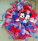 July 4th Mickey Minnie Front Door Wreath Large Handmade 24" Patriotic Decor