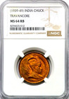 1939-49 India Princely State Of Travancore One 1 Chuckram - Ngc Ms 64 Rb Cc932