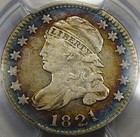 1821 Capped Bust Dime Large Date Pcgs Vf Details...with Rainbow Rim Toning, Nice