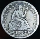 1853 Philadelphia Mint Silver Seated Liberty Quarter With Arrows & Rays Rare