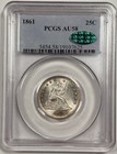 1861 25c Au58 Cac - Seated Liberty Quarter Pcgs And Cac - Beautiful Coin Luster+