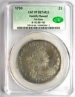1799 Draped Bust Silver Dollar $1 Coin - Certified Cac Vf Detail (cacg)