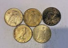 Lot Of 5 Cull 1922-1935 Us $1 Silver Peace Dollars, Mixed Dates & Mint Marks