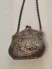 Antique Victorian Horse Drawn Chariot Sterling Silver Purse With Silver Chain.