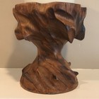 Rustic/brutalist Brown Burlwood Hand Carved Pedestal Candle Holder
