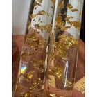Vintage Mcm Lucite Taper Candles Clear With Gold Flecks Pair