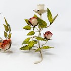 Pair Of Vintage Italian Toleware Candle Holders Hand Painted Roses Leaves Metal