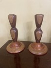Pair Of 2 Vintage Mcm Style Mark Strom Handmade Wood Sculpture Candlesticks