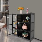 For Entryway Bamboo Display Cabinet Storage Cabinet With Doors Black Showcase