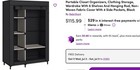 Portable Black Closet Wardrobe Storage Organizer With Shelf And Hanging Rod