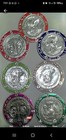 Sharjah 1966 Kennedy Set Of 6 New Currency Overprints Round Gold Foil Stamps Mnh