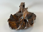 Brutalist Hand Carved Burl Wood Bowl W/ Double Handle 10" Vintage Midcentury Mcm