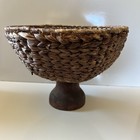 Woven Pedestal Round Rattan Basket On A Foot Fruit Boho Centerpiece