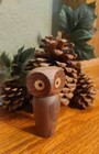 Cute New Artisan Crafted Solid Walnut Wooden Owl W/ Magnetic Head Turns Figurine