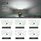 Tacklife Green Pro Cross Line Laser Level, Three Modules With 2 Laser Heads, Pro