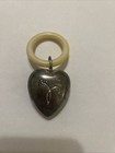 Vintage Silver Plate Baby Rattle With Plastic Teething Ring Heart Shaped