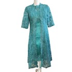 Size 4 Teal Lace Knee Length 2 Pc Duster Dress Satin Mother Of Bride Formal