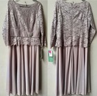 Jackie Jon Mother Of Bride/groom Putty 3/4 Sleeve Lace Chiffon Dress Sz.16~nwt