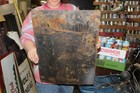 30” X 20” Antique Wooden Grain Barrel Velvet Rainbow Sticker And Burn Marks