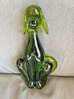 Viking Co. Beautiful Solid Art Glass Sitting Dog Artist Figurine Green 8 “tall