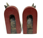 Vintage Laurel Burch Black & White Stripe Cat Painted Folk Art Wood Bookends
