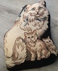 Vintage Needlepoint Petit Point Tapestry Cat Kittens Door Stopper
