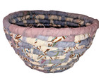 Handmade Wrapped Cotton Fabric Coiled Basket Blue Brown White 4 1/2" Tall