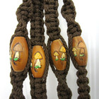 Vintage 70s Macrame Plant Hanger Holder Wood Mushroom Beads Cleaned 36" Brown