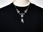 Vintage Navajo Silver Necklace With Red Coral & Turquoise 80s Used