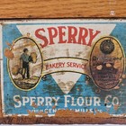Vtg 1931 Sperry Flour Co General Mills Wooden Recipe Box Brass Hinges 7x6x5"
