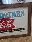 Vintage Coca Cola Metal Sign Cold Drinks With Crushed Ice Advertising