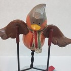 Cardinal Bird Figurine Painted Wood Wire Legs 8"long 3.5"tall 2.25"wide Nice