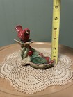 Cardinal Bird Figurine In Poinsettia Flower And Holly Berries Christmas 4 Inch