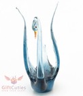 Dave Frye Signed Fostoria Glass Whimsy Free Hand Open Swan In Argus Blue 2006