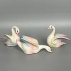 Vtg Bisque Porcelain Swan Figurines Set Of 3 Pastel Colors Airbushed Decor