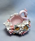 Vintage Hand Painted Enamel On Metal Floral Swan Trinket Holder Dish Figurine
