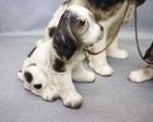 Vintage Porcelain Figurines Springer Spaniel Mom, 2 Pups On Chains Made In Japan