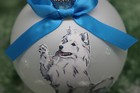 D594 Hand-made Christmas Ornament Dog - Samoyed - Happy Waving Samie (lt Blue)