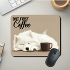 Samoyed Mouse Pad But First Coffee Mousepad Dog Office Desk Mat Handmade Gift