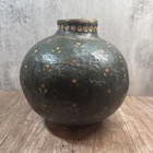 Vtg Rare Handmade Rustic Wood Indian Folk Art Water Pot Matka Vase Jar Floral Lg