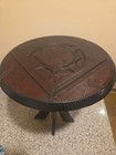 Hand Carved Wood / Leather Detachable Small End Table Artisan Handcrafted