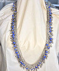 Vtg Cobalt Blue Glass Silvertone Bollywood Belly Dance Bells Necklace-belt 38" +