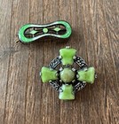 Vintage Miracle Signed Celtic Cross & Green Enamel Bar Brooch Set - 2 Brooches