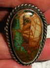 Vintage Signed Mb Navajo Great Green Turquoise Sterling Silver Ring Size 11 Vafo