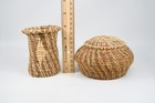 Vtg. 7/8" Miniature Alaskan Native American Eskimo Woven Lidded Basket