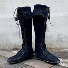 Vintage 1950s Native American Sioux Black Suede Knee High Fringe Boots Moccasins