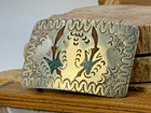 Vintage Navajo Nickel Silver Plated Turquoise Hand Crafted Belt Buckle