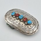 Early Ric Charlie Navajo Sterling Turquoise/coral Buckle 3" X 2"--248.26