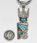 Big Signed Zuni Bevis Tsadiasi Turquoise Inlaid 925 Silver Hemis Kachina Pendant