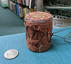 Vintage Animal Fur Hide Drum 7 Inch Diameter 10 Inches Tall